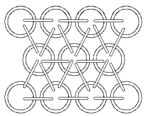 Figure 2. Pattern for chain mail. As you can see, chain mail is made from metal chains which are linked together into a metal "fabric." While the chains are flexible, the final product is stiff and protective due to the cross linking.